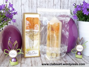 Ein ganz besonderes Dekoobjekt an Ostern ist die Osterkerze. Die Workshopteilnehmer konnten sich ihre eigene Kerze „bestempeln“ und eine passende Verpackung dazu herstellen und bestempeln. So eignet sich dieses Duo hervorragend als schönes Geschenk zu Ostern.