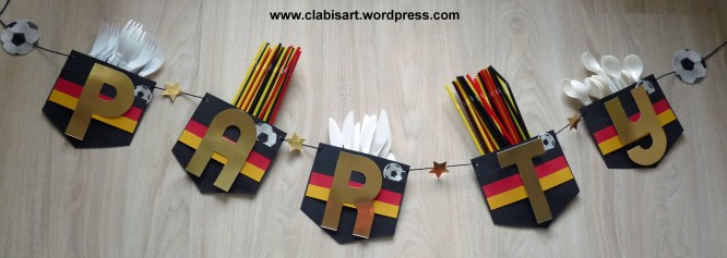 Damit eure Fan-Arena zu Hause auf Hochtouren kommt habe ich eine Fußballgirlande über euren Partytisch entworfen: