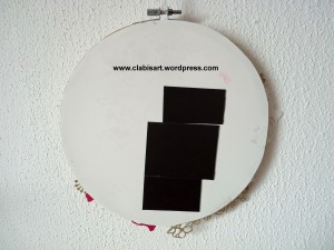 Auf der Rückseite habe ich ein Magnetpapier aufgeklebt. So kann ich den Stickrahmen vorne einfach mit kleinen Magneten umdekorieren.