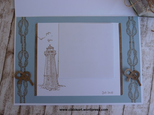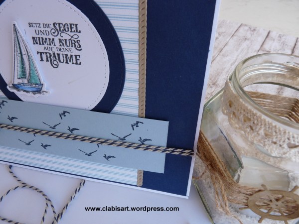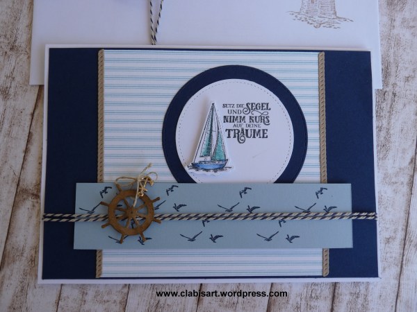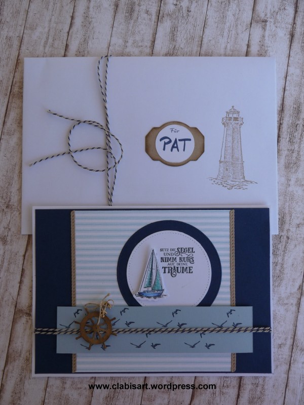 Da eine Arbeitskollegin uns verlässt und nach Norden zieht, habe ich sofort die erste Gelegenheit geschnappt und mit diesem Set eine Abschiedskarte gewerkelt: „Du wirst mir zum Abschied eine maritime Karte machen?!“, hatte sie vor geraumer Zeit mal gegenüber mir erwähnt…..