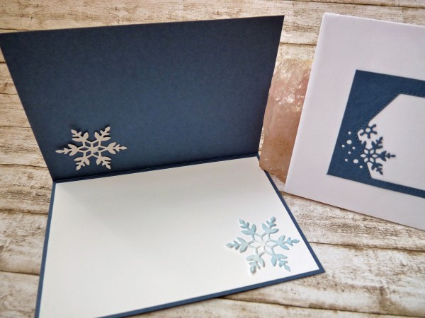 Auch das Innenleben der Karte und der Umschlag wurden ausgestaltet. Die monochrome Karte wirkt durch das Abendblau des Cardstock richtig edel!