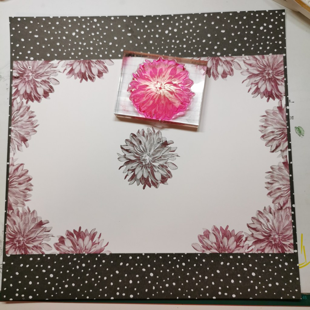 Jetzt kam noch der Konturenstempel der großen Dahlienblüte ins Spiel: