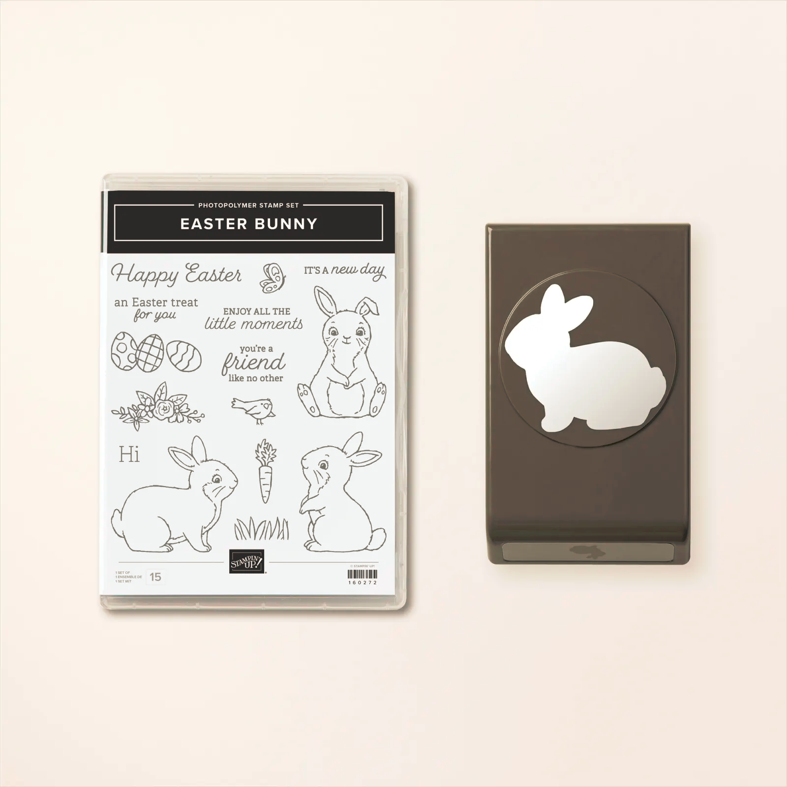 Produktpaket OSTERHASE, bestehend aus 15teiligem Stempelset und 1 dazu abgestimmten Handstanze
