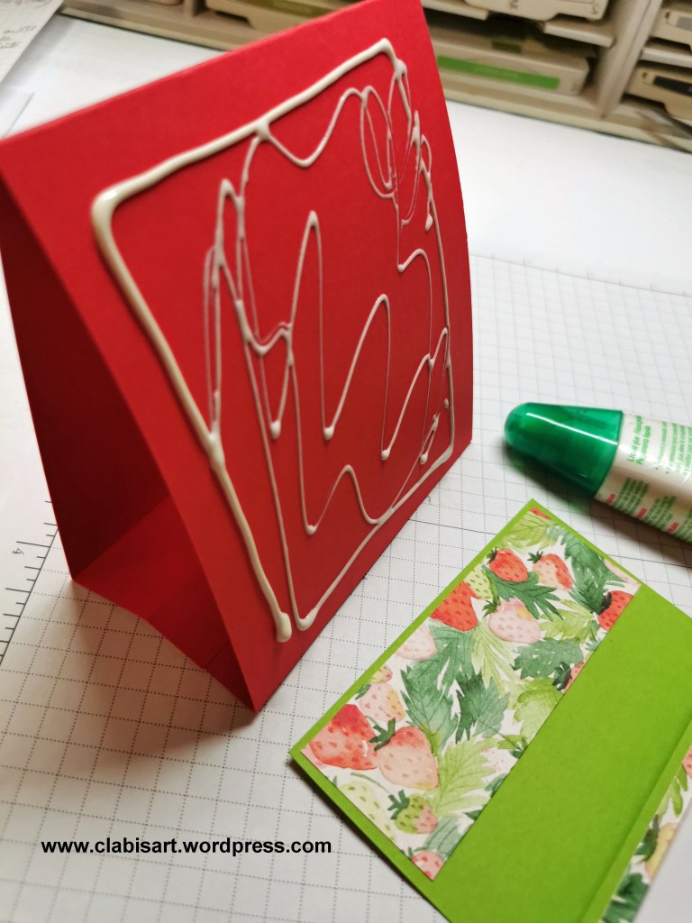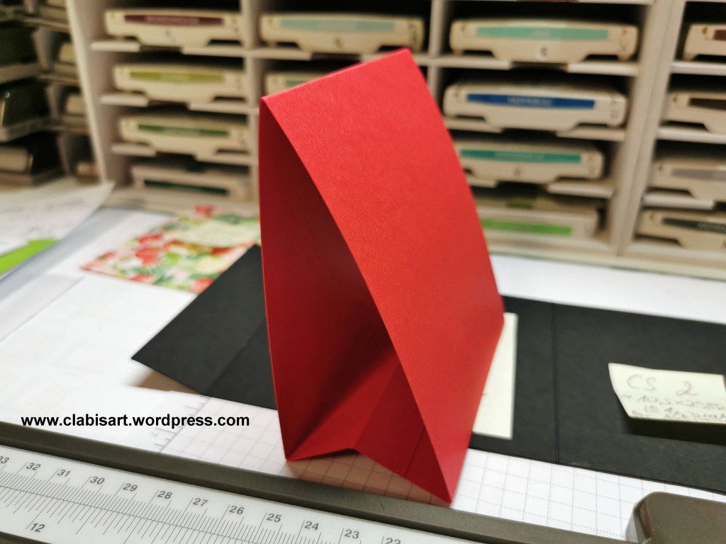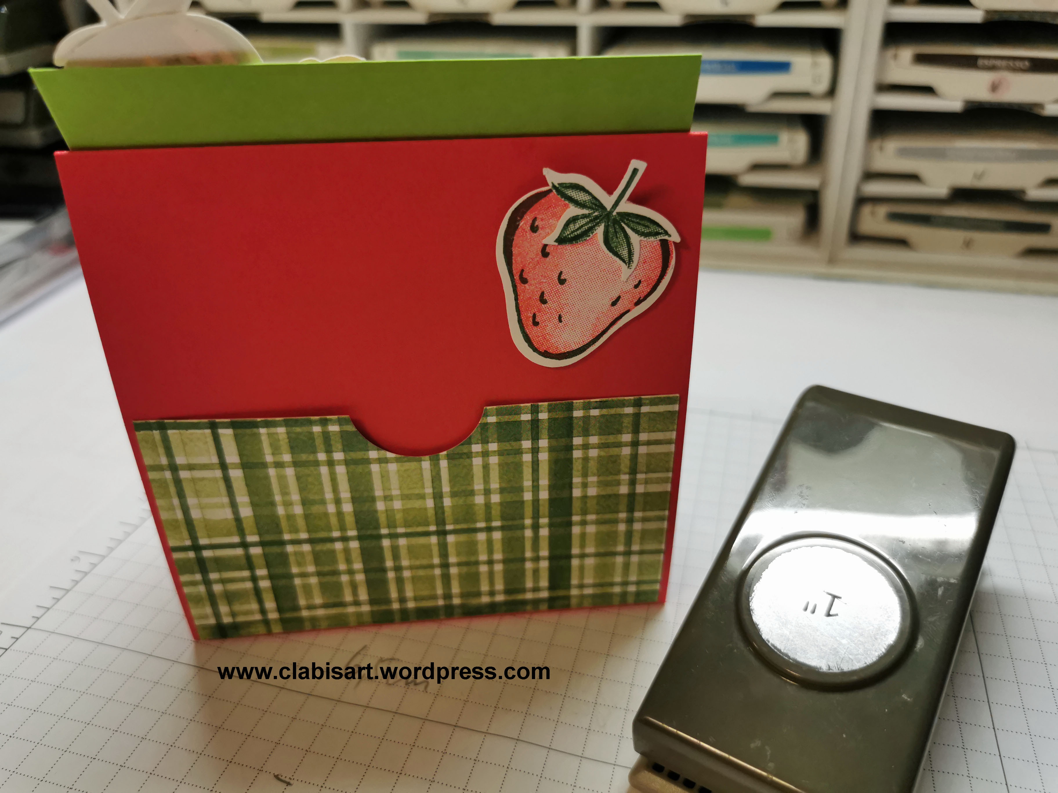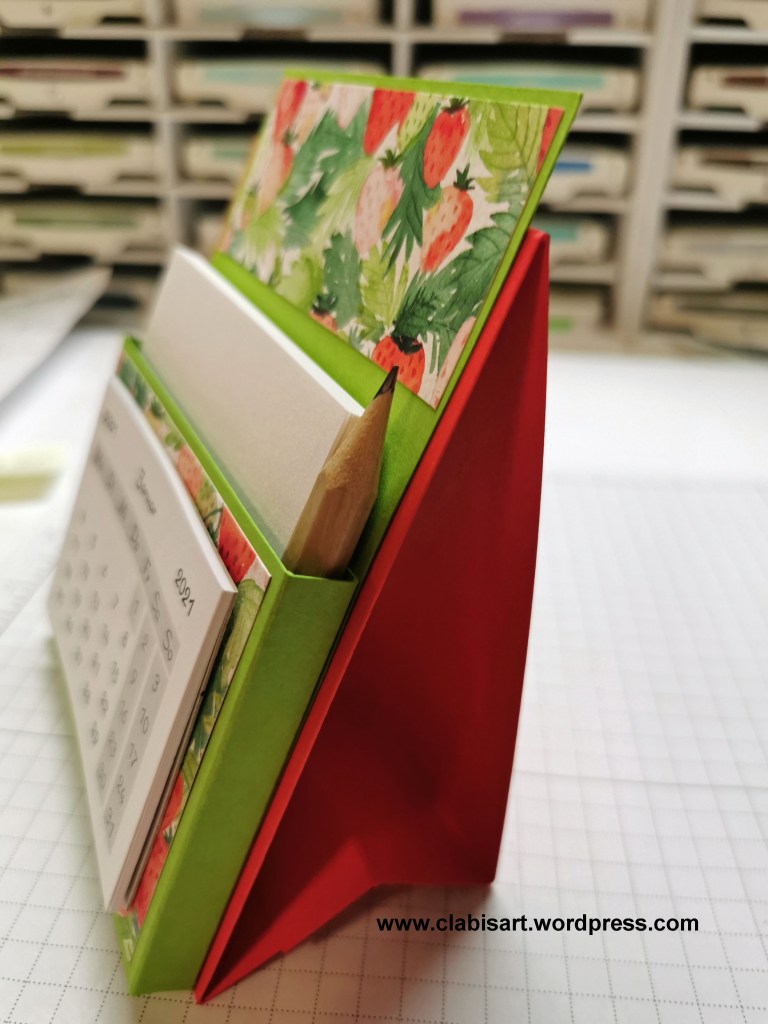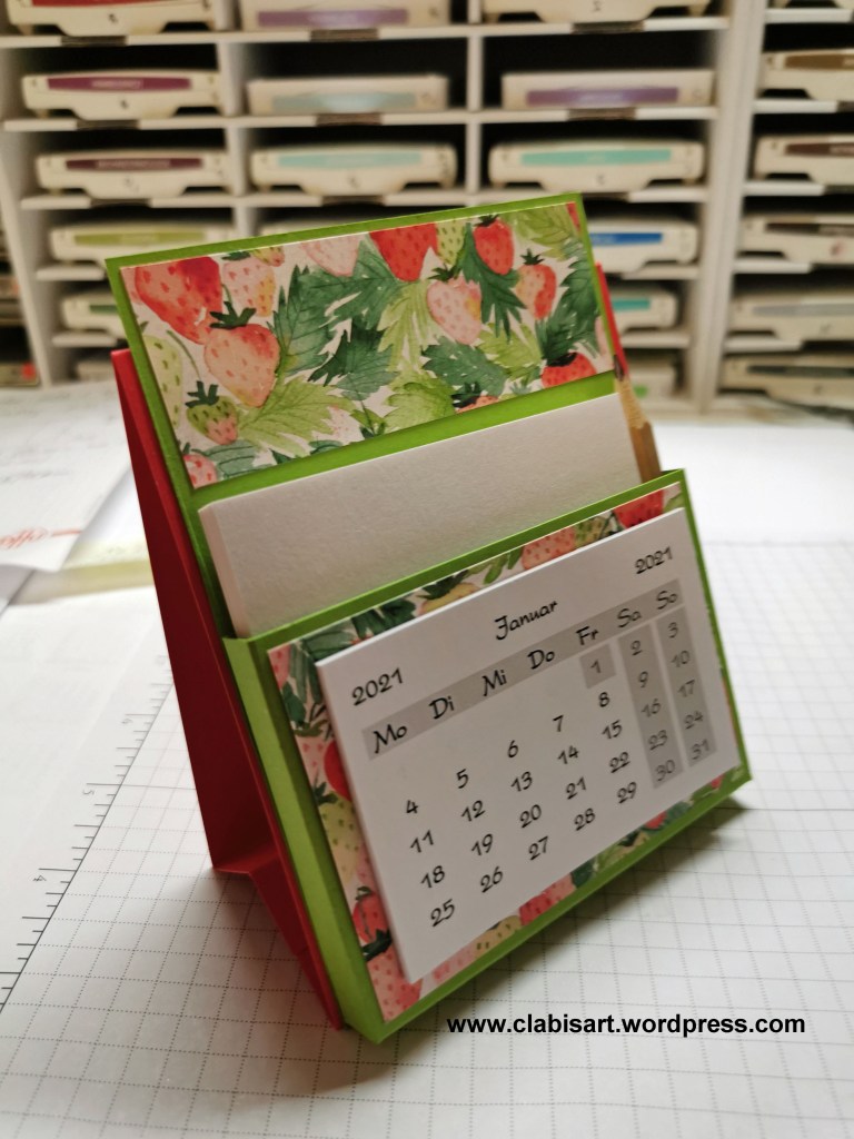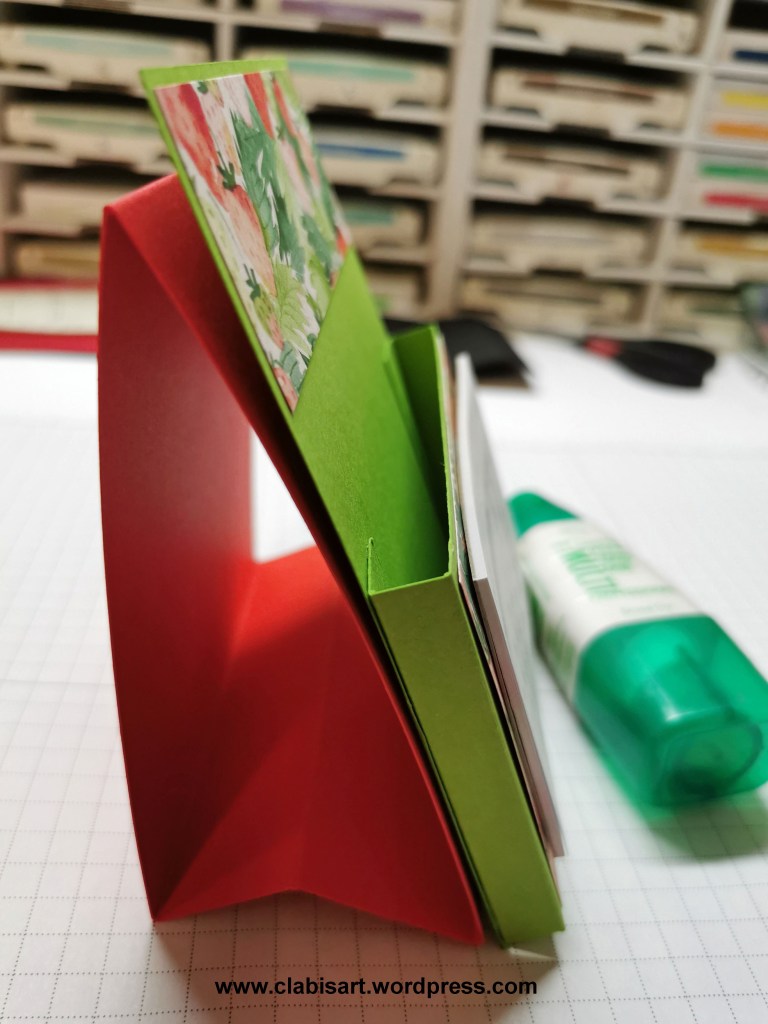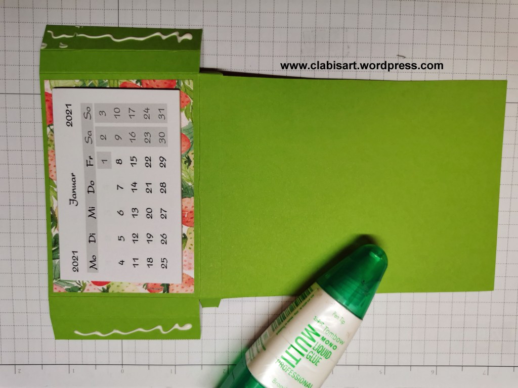 Das ist mein Adventskalender für die vier Adventssonntage in Haeuschenform. Geschmückt habe ich sie mit einem gestanzten grünen Doppelzweig, der aussieht wie frisch von einer Tanne, roten Glitzerzahlen und einem roten Satinschleifchen. Das weiße Cardstock wurde mit einem großen Hintergrundstempel in Karoform bestempelt. Als Deko kann ich sie jedes Jahr wieder hervorholen und schön auf ein Tablett oder Adventsteller dekorieren.