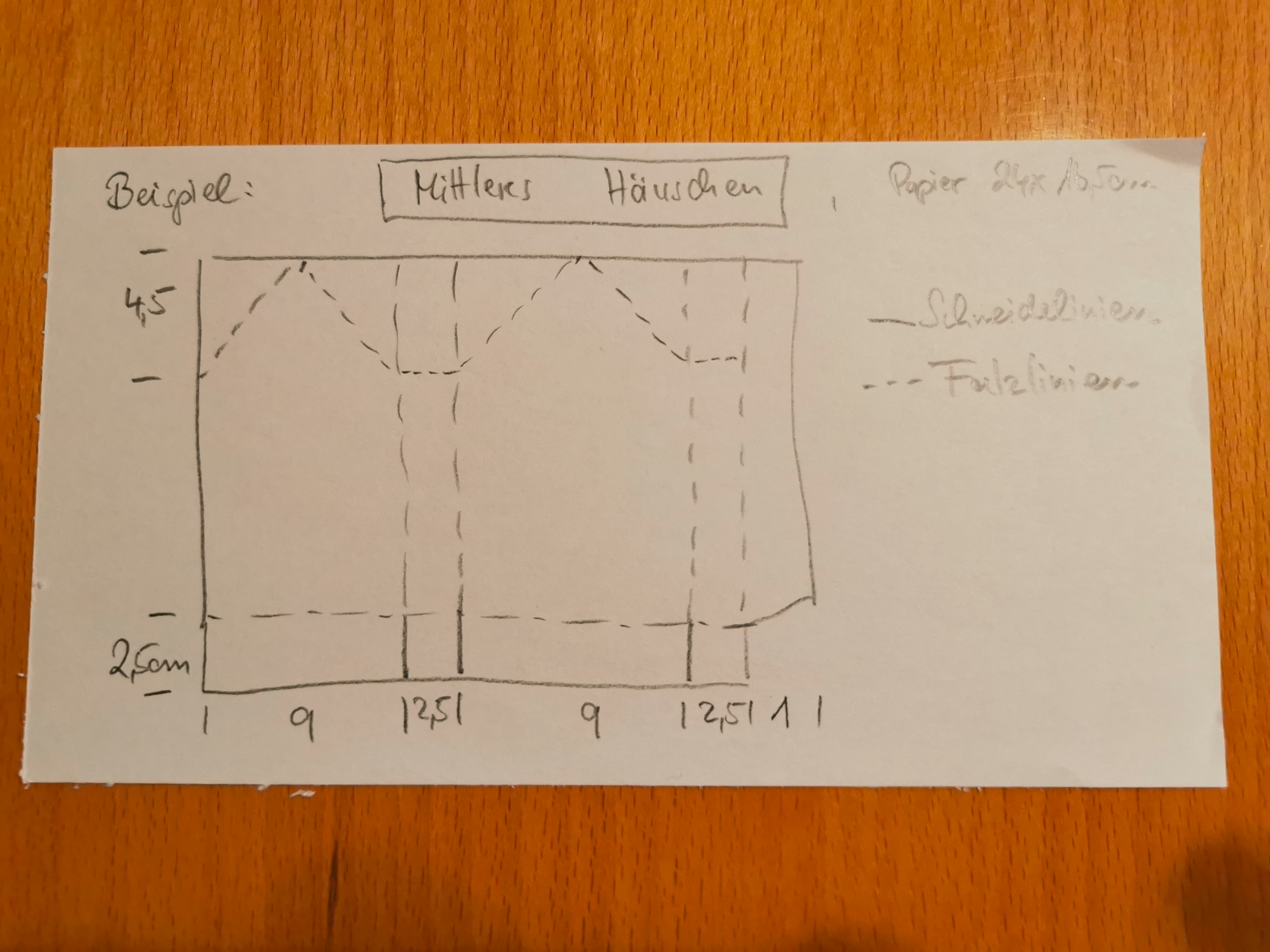 Am Ende ist das größte Haeuschen aus einem DIN A4 Bogen hergestellt.