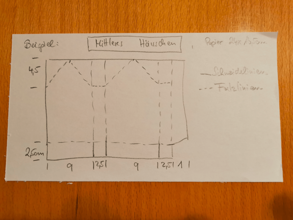 Ich hoffe, ihr könnt das Wichtigste erkennen!? So sehen meine dreidimensionalen Entwürfe auf Papier eben aus. Wenn ihr einen meiner Workshops schon besucht habt, müsstet ihr die Kritzeleien verstehen. 🙂