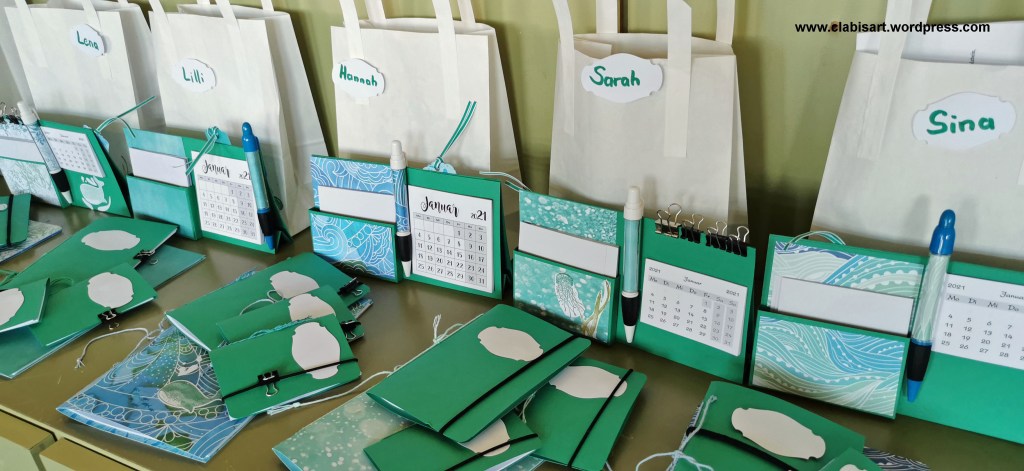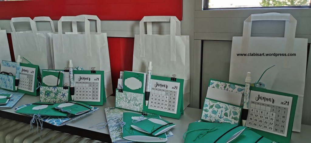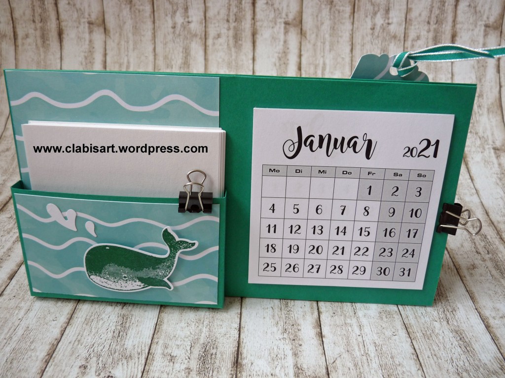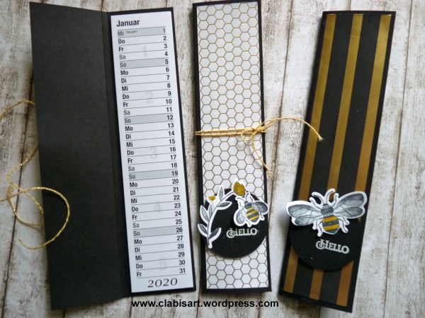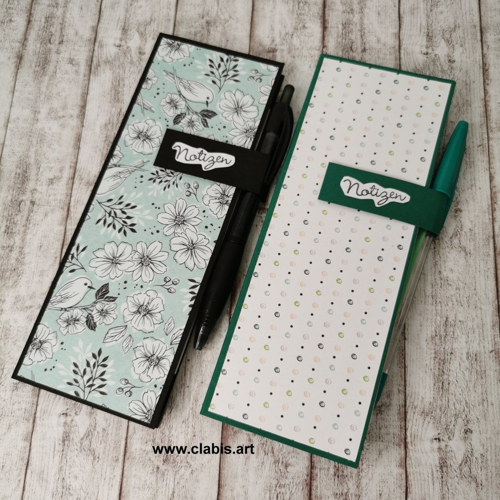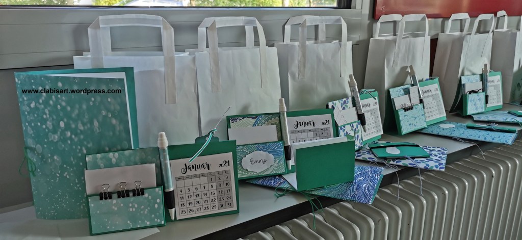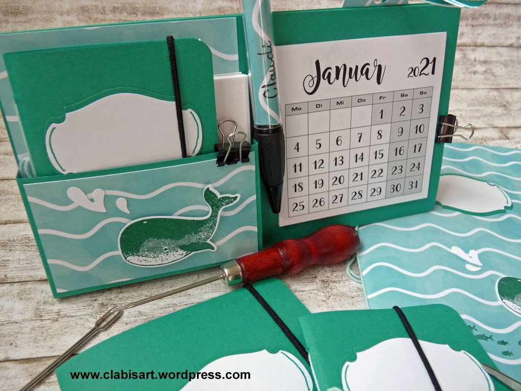 Da sie als Grundlage den Cardstock von Stampin`Up! haben, sind sie auch sehr stabil und meist so haltbar, daß ich sie mehr als ein Jahr verwende. Den Kalender kann man neu wieder einkleben. Auch mit dem Notizblock ist das natürlich möglich.