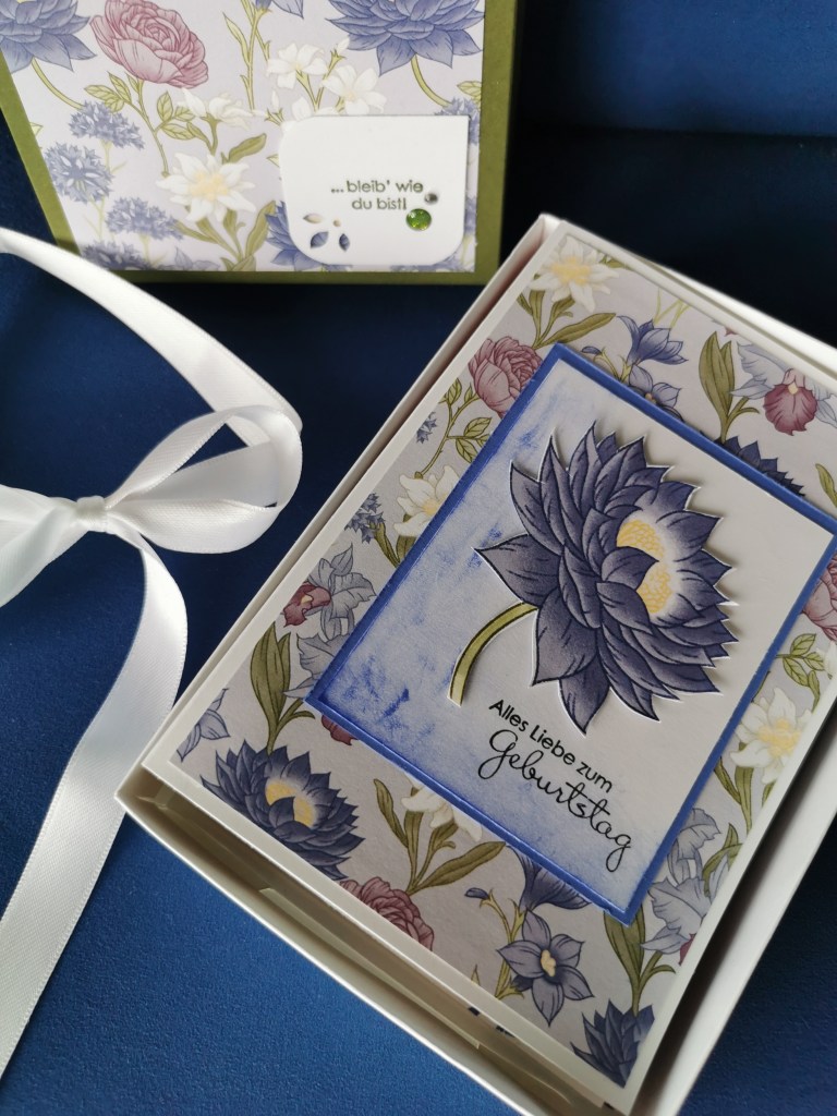 Auch dieses Ergebnis finde ich sehr schön. Und wenn die Bastelmaterialien so perfekt aufeinander abgestimmt sind, ist das immer eine tolle Sache! Das findet man nur bei Stampinup! Diese Bastelmaterialien sind nur im Direktvertrieb über uns Unabhängige Stampinup Demonstratorinnen erhältlich. Ihr dürft mich dazu also immer gerne kontaktieren.