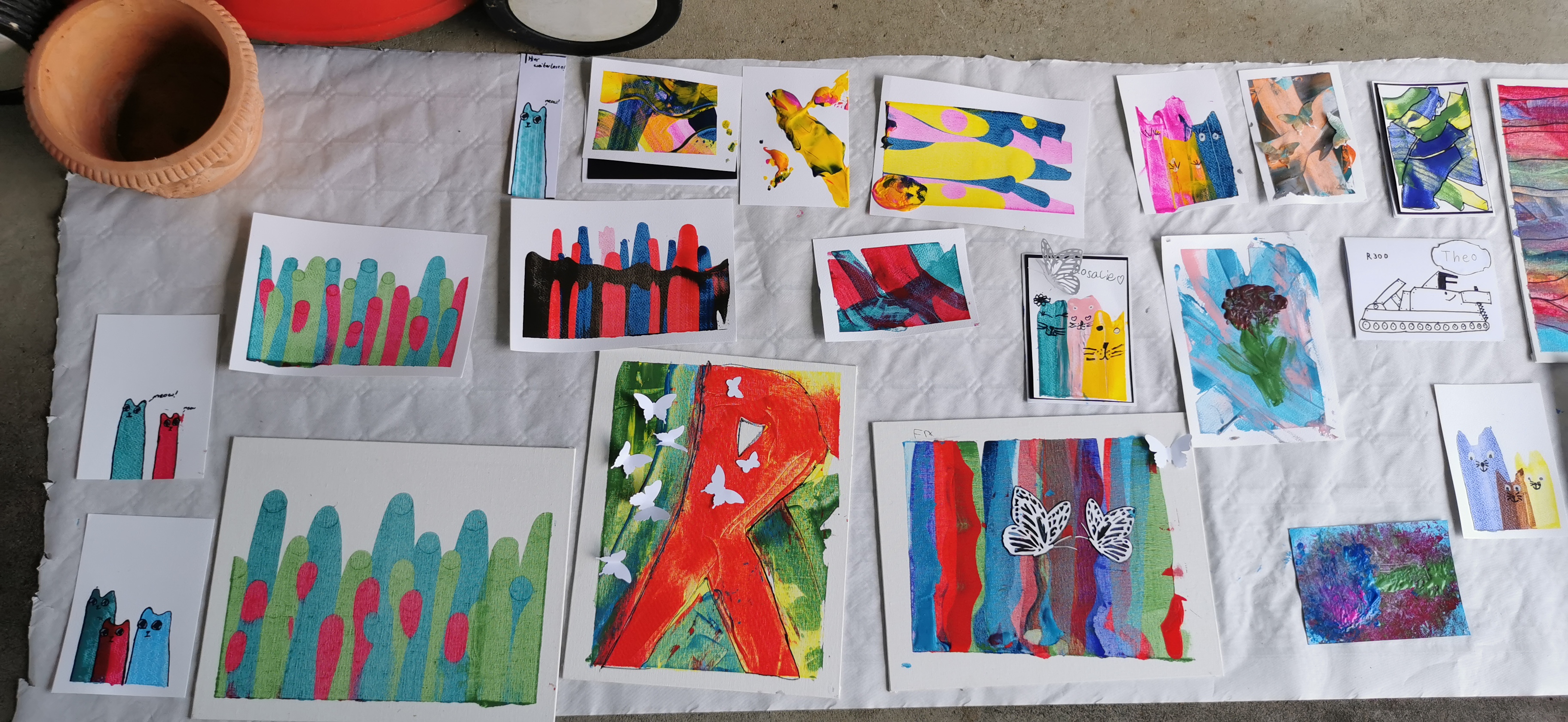 Im letzten Ferienworkshop verwendeten wir Aquarellpapier und Leinwand.