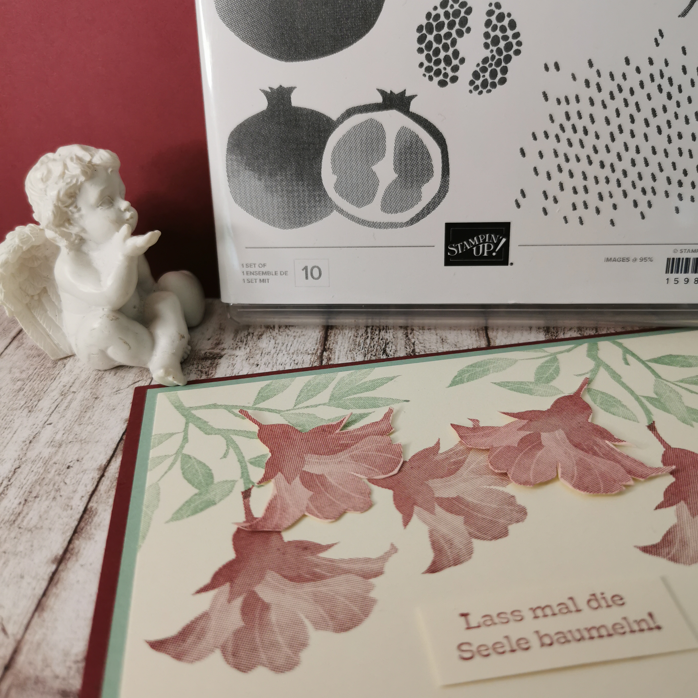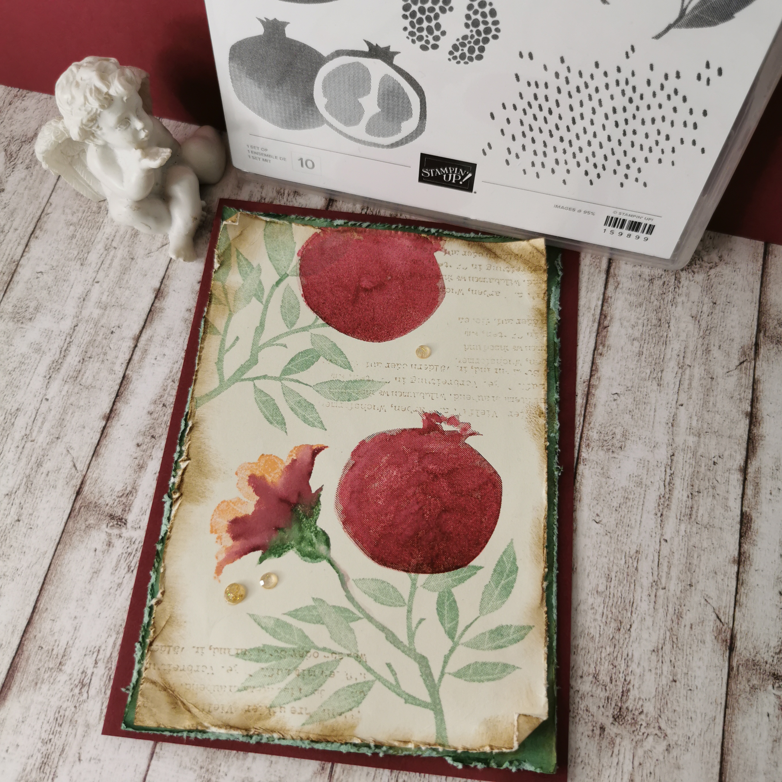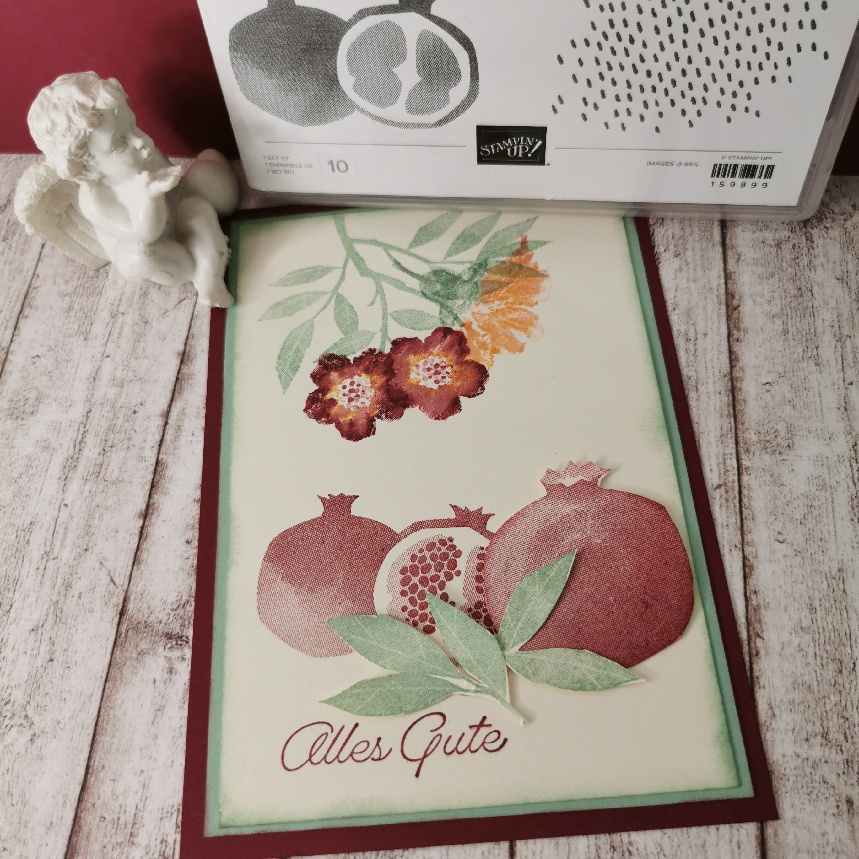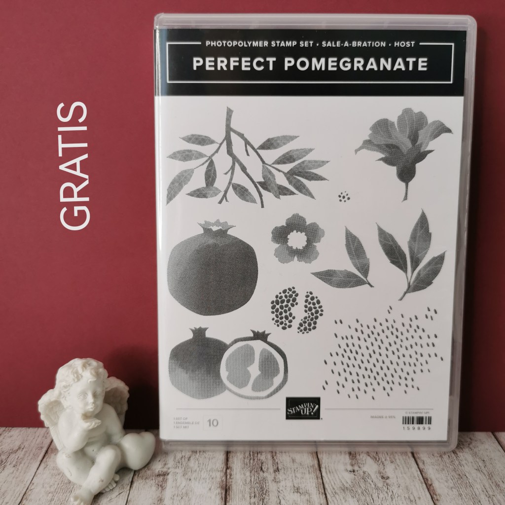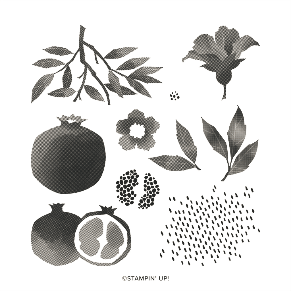 Das Stempelset für GastgeberInnen PERFECT POMEGRANATE gehört zu jenen herrlich vielseitigen Sets, die jeder Bastelfan in seiner Sammlung haben sollte. Kombiniere die wunderschönen Bildmotive mit Grüßen für diverse Anlässe: So gestaltest Du immer perfekte handgefertigte Karten! Stempel die Granatäpfel einzeln oder setze sie mit Zweigen, Blüten und Blättern zu einer ganzen Szene zusammen. Das große Texturmotiv ist der Optik von Samen nachempfunden, eignet sich aber auch als Hintergrund oder Lagen-Element für verschiedene Looks, die Dich absolut begeistern werden.