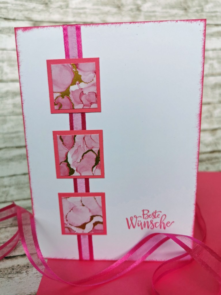 Gerade diese Rückseite ist so interessant, da man da die neuen Incolors für 2023/24 verwendet hat. Es sieht jeweils aus, wie mit einem breiten Pinsel auf Leinwand gestrichen. Bei meinen drei Kartenbeispielen sind dies (von links nach rechts):