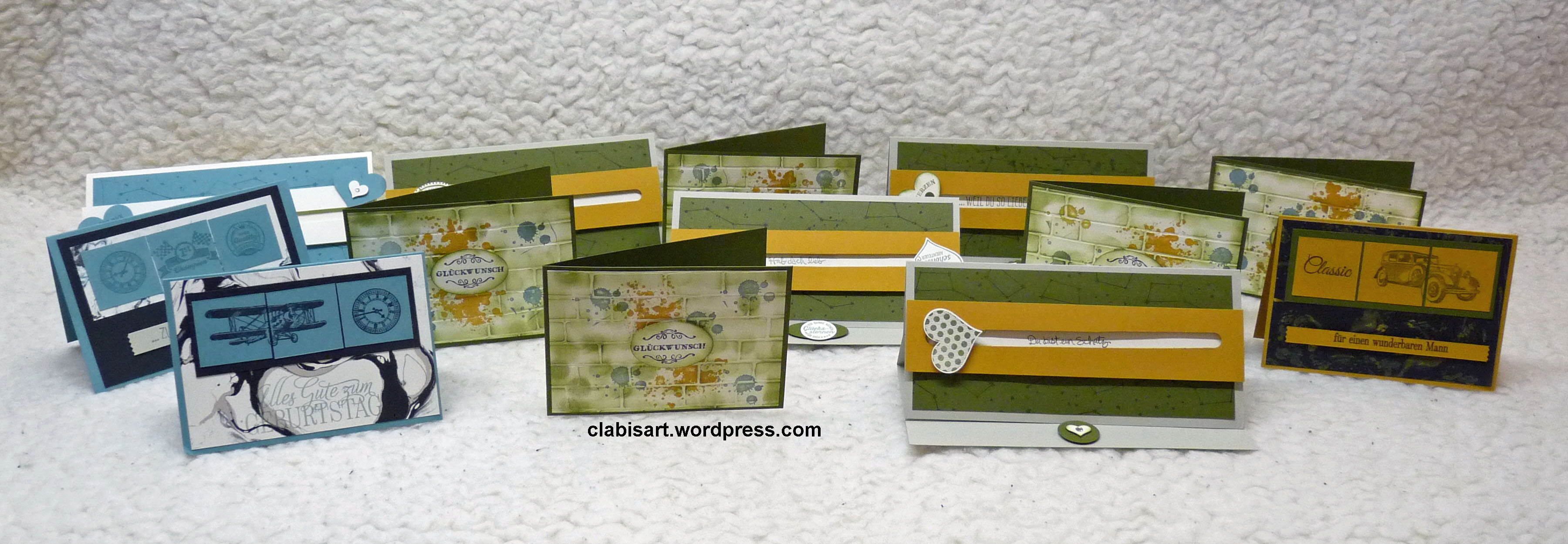 Es wurde „gebügelt“ (mit der BigShot geprägt), „gepudert“ (mit den kleinen Fingerschwämmchen eingefärbt), „Mercedes“ gefahren (mit Snail-Kleber von der Rolle alles verklebt) und noch vieles mehr…