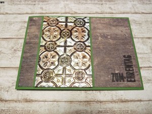 Material: Embossing-Fön, BigShot, Prägefolder, Kartenzuschnitt, Folienpapier in Silber, deshalb Embossing-Pulver in Gold und Kupfer, Versamark-Tinte, Stazzon-Tinte, Stempel nach Belieben und evtl. Embellishments