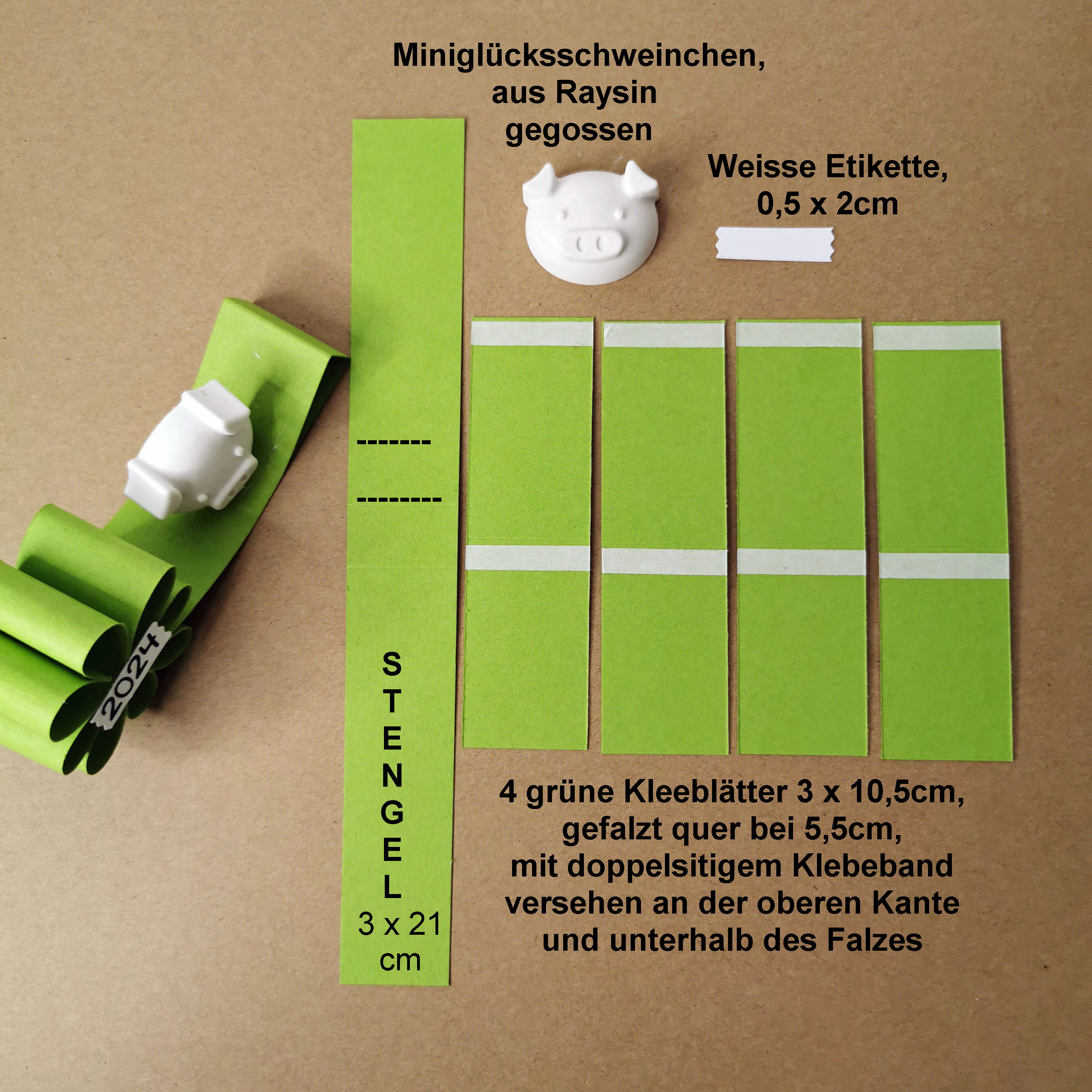 Das Stempelset von StampinUp! liefert vier entzückende Glücksschweinchen mit passendem Text. Ich habe ihn aber von jedem Schweichen abgeschnitten. So kann ich alle Stempel miteinander kombinieren, wie ich möchte.