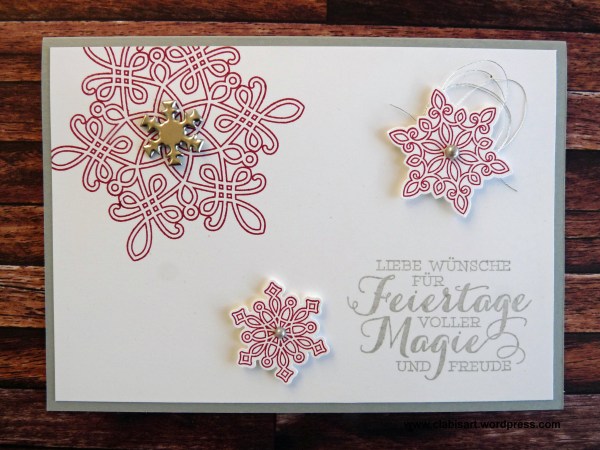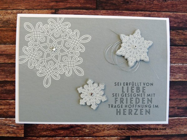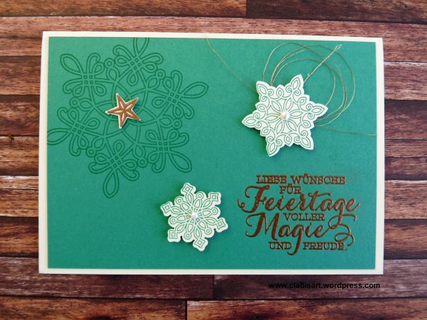 Damit ihr es nachmachen könnt, biete ich dieses Jahr ein Komplettset an, mit dem ihr zahlreiche Karten, Verpackungen und noch vieles mehr basteln könnt. Jetzt zeige ich euch aber erst mal ein paar Impressionen der „Drei-Sterne-Karte“: