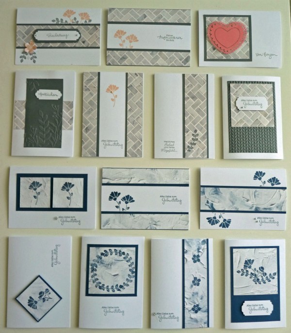 Am Wochenende fand in meiner Bastelbude der erste Workshop seit Corona-Lockdown Anfang März statt. In kleiner Gruppe konnten die Teilnehmer mit einem einfachen One Sheet Wonder 14 Designkarten werkeln.